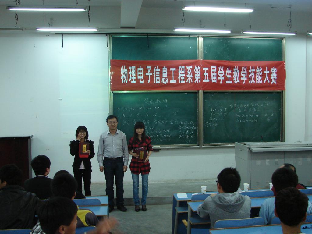 通过评委打分,最终评出获奖选手为:一等奖靳巧丽;二等奖张倩、吴婷;三等奖刘梦梦、张清、左博敏;优秀奖蒲文斌、杨一帆。由侯茹、袁训锋、杨滨峰和李磊老师分别为以上获奖选手颁奖。最后由杨滨峰老师对本次比赛做了点评。他表示:本次比赛参赛选手通过认真准备,都努力表现出了自己对课堂教学的理解。通过不同的表现方式来营造了老师与员工互动的活跃气氛。希望同学们今后应更加深刻的理解所学知识,从中提炼出重点、难点,用更加清晰的思路,更好地表达出应有的含义。