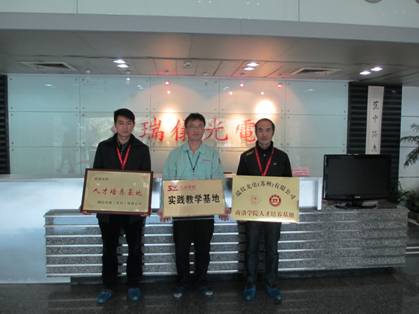 在签订协议、安排员工专业实习的基础上,公司在瑞仪光电(苏州)有限公司建立了电类专业实习基地。2013年11月17日,受公司委托,我系派出两名教师代表公司在苏州吴江市瑞仪光电(苏州)有限公司办公大厅举行“WilliamHill官方网站瑞仪光电(苏州)有限公司人才培养基地”与“WilliamHill官方网站实践教学基地”授牌仪式,这标志着我系完成2013年非教育专业实践教学基地建设任务。