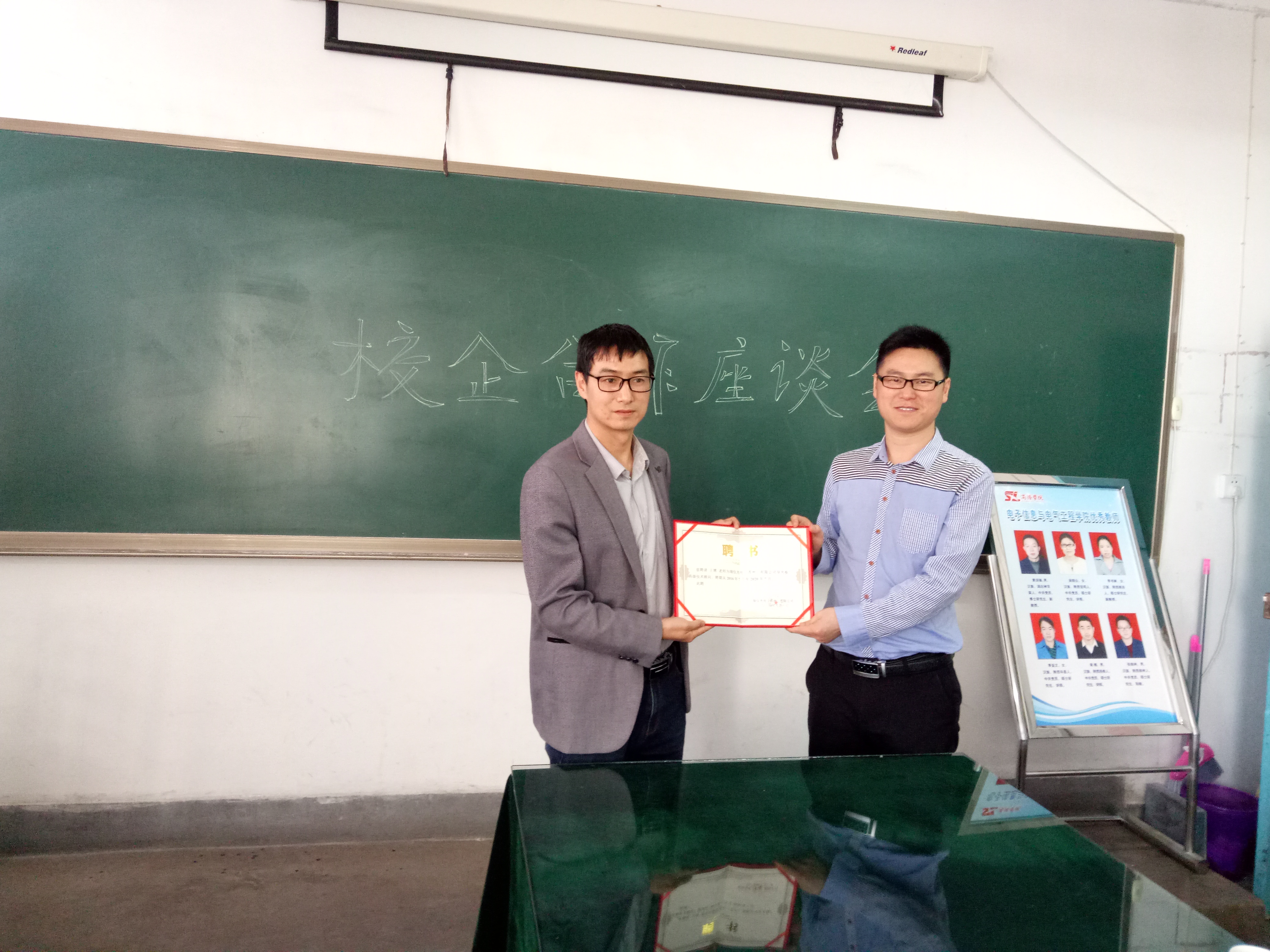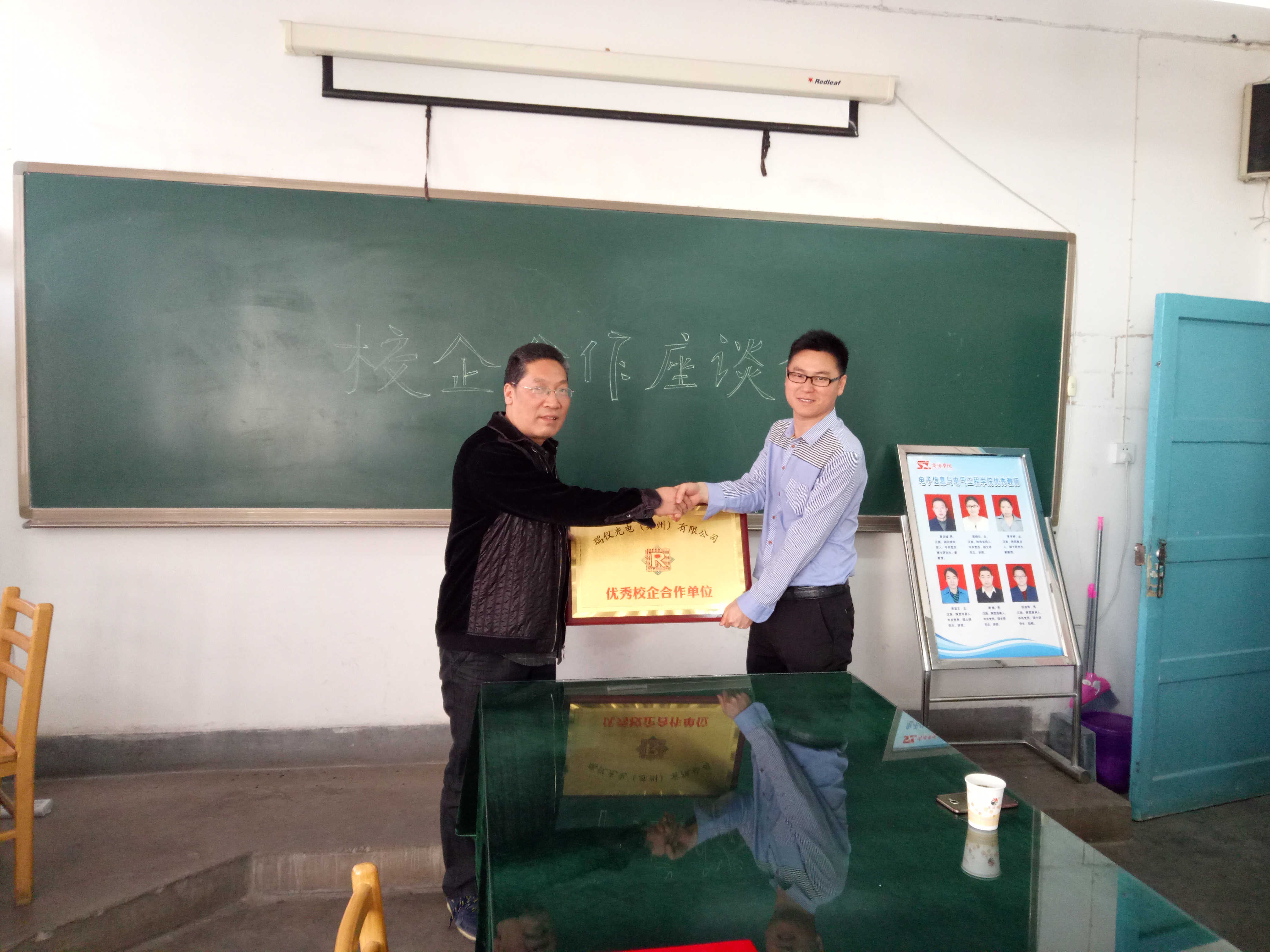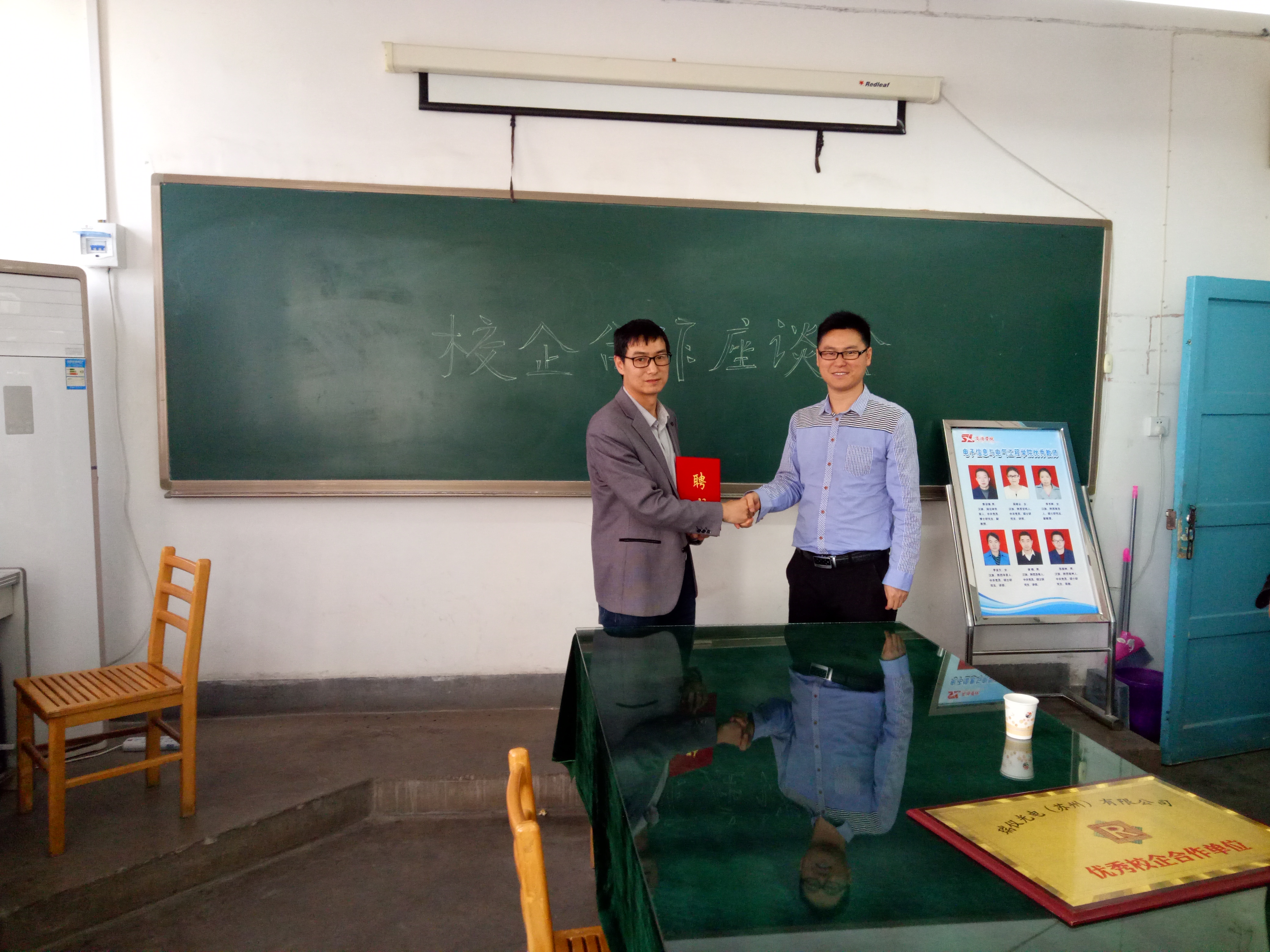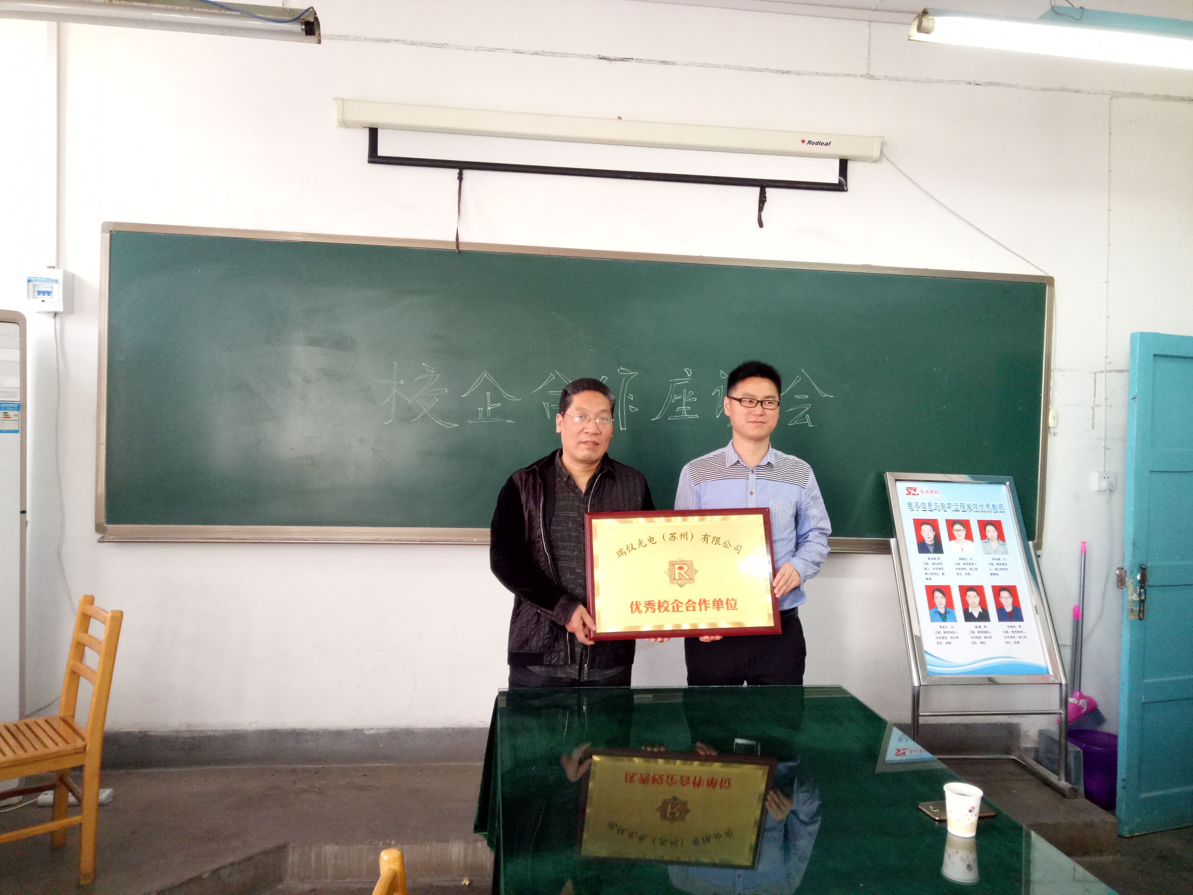 首先,周田代表瑞仪光电(苏州)有限公司对双方5年的校企合作给予了极大的肯定,确定公司为“优秀校企合作单位”并为公司授牌;同时聘任王博为瑞仪光电(苏州)有限公司技术顾问并颁发了证书。座谈会上,双方就员工实习、企业参与教学、共同培养员工等方面初步达成共识。