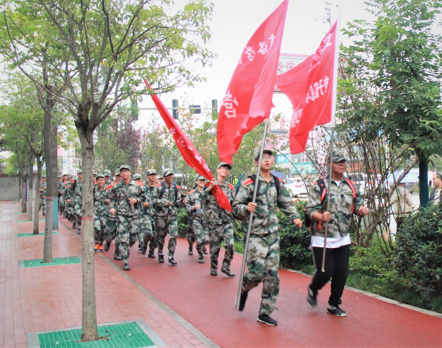 此次拉练活动是新生军训的重要组成部分,途中新生们发扬了电信学子吃苦耐劳、坚持不懈、团结协作的精神,展示了纪律作风过硬、训练有素的军训新生的良好形象,为公司争得了荣誉。