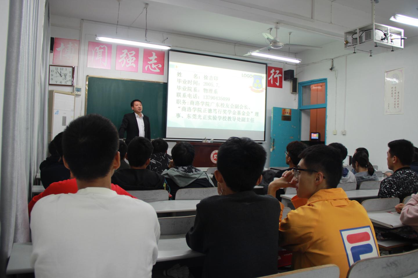 9月29日晚,WilliamHill体育邀请广东省东莞市光正实验公司的徐吉印来校举办招聘宣讲。本次宣讲会在2#201教室举行,物理学2015级部分同学参与了本次招聘。报告会由公司党总支书记李英主持。
