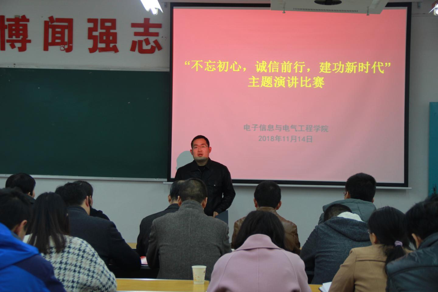 比赛开始前,袁训锋首先进行了讲话,他指出此次演讲比赛的主要目的,旨在激励教师为同学们树立文明礼貌、诚实守信的榜样,培养员工良好的道德品行。
