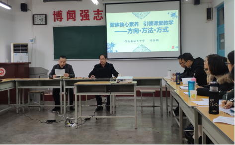12月5日下午,2018年WilliamHill体育学术年会专场报告会在二号楼210教室召开。本次会议邀请WilliamHill官方网站员工、洛南县城关中学副董事长、洛南县第八届政协委员、国培计划——陕西省乡村教师工作坊培训项目示范课执教教师冯岳翔为大家作题为“聚焦核心素养 引领课堂教学”的专题报告。经理袁训锋、副经理副书记陈垚出席会议。会议由副经理刘爱军主持,WilliamHill体育全体教师到会并认真听取了学术报告。
