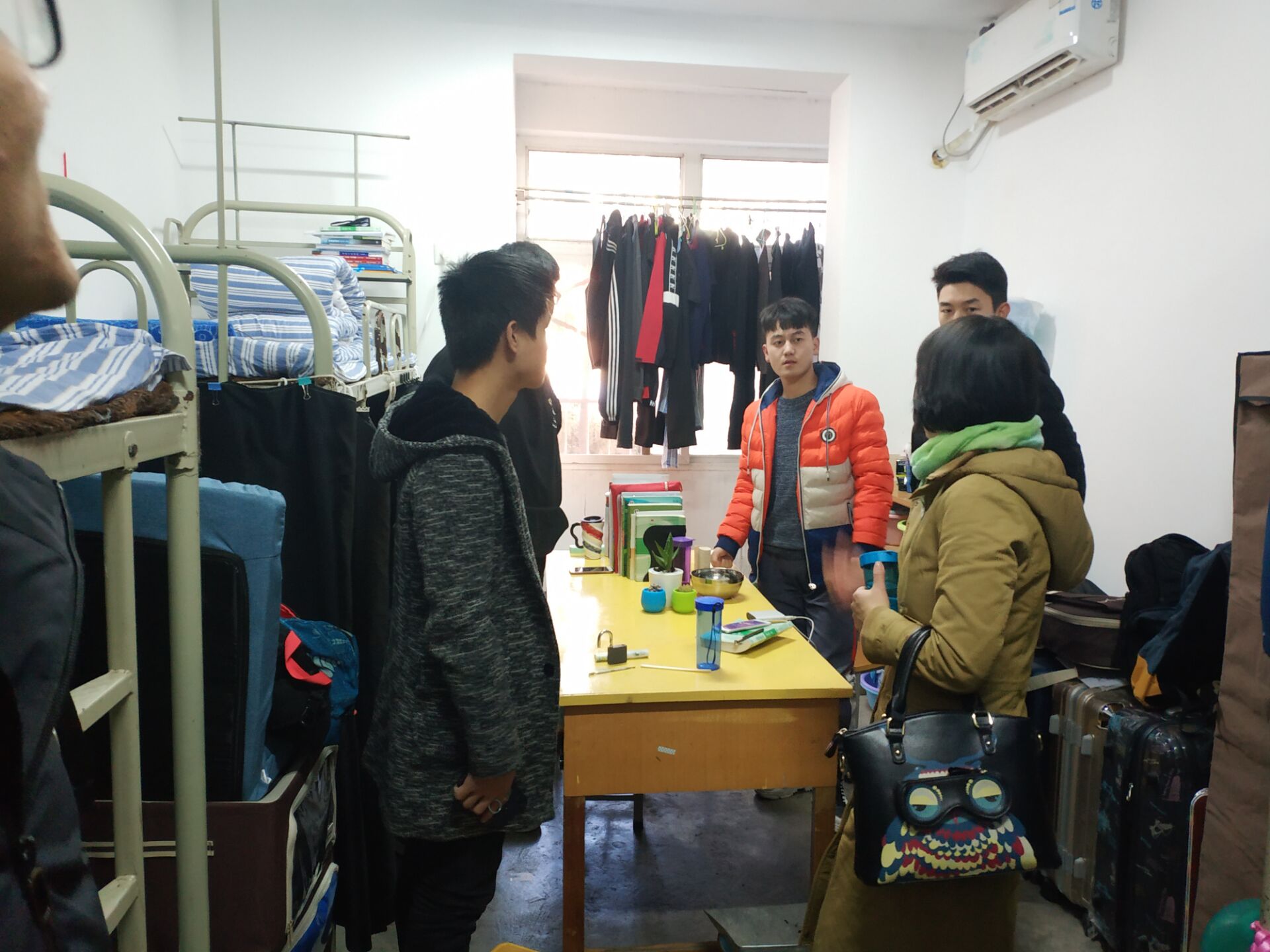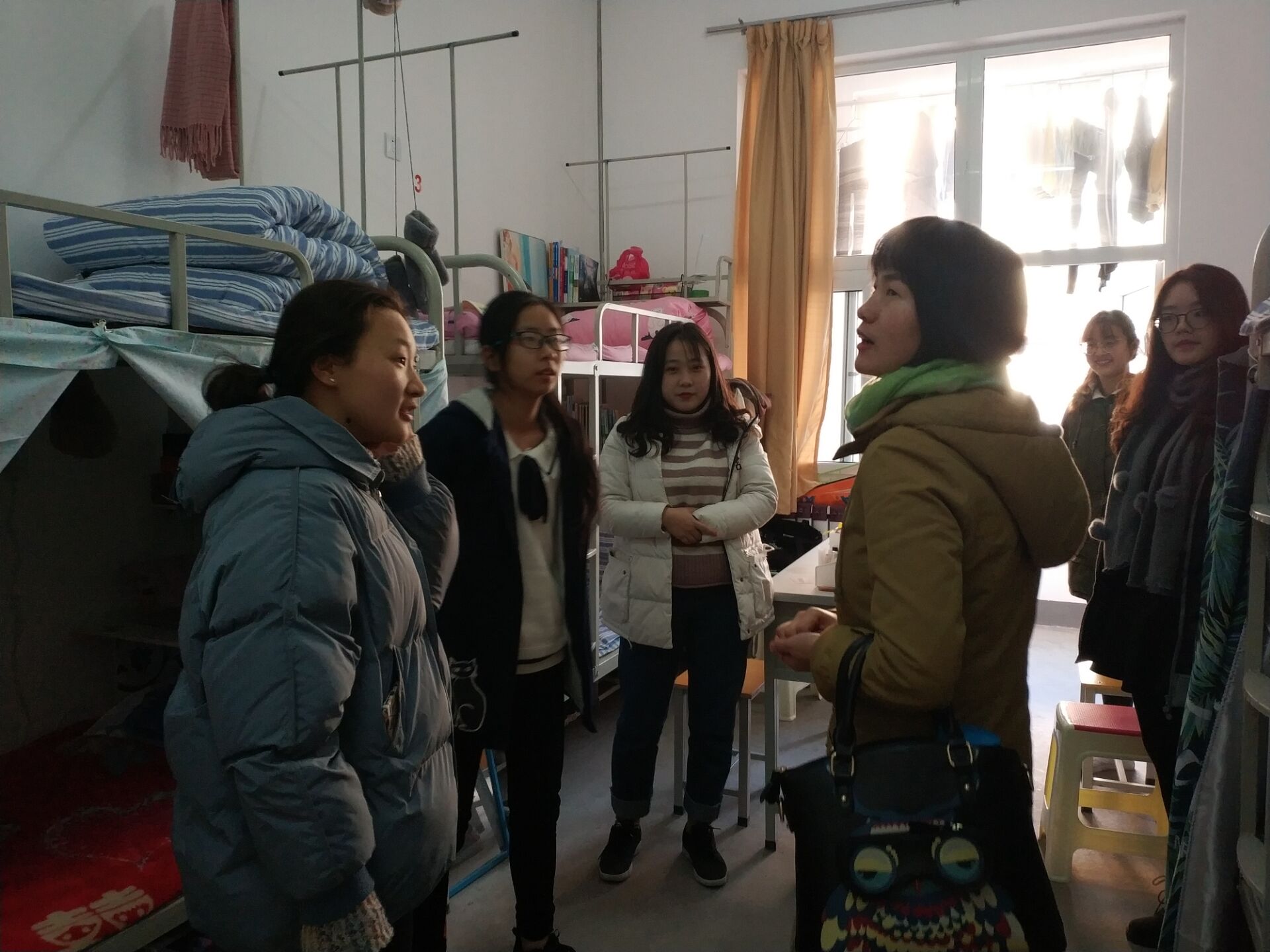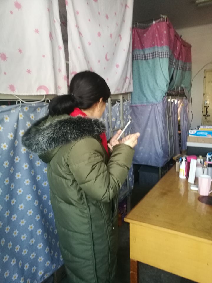 上 图:班主任李亚文、王园园、梁东云等老师深入班级宿舍了解员工宿舍情况