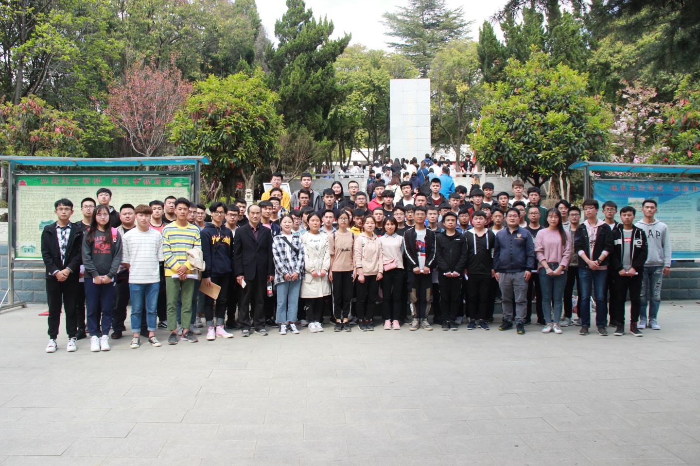 在商洛市烈士陵园内,李英向大家认真讲述烈士陵园的概况和主要烈士的英雄事迹。郁郁葱葱的松柏,巍峨高大的“人民英雄永垂不朽”纪念碑,让大家对革命烈士的敬仰之情涌上心头,先烈们为了革命,勇于奉献、勇于牺牲的大无畏精神,让在场的所有学员为之动容。