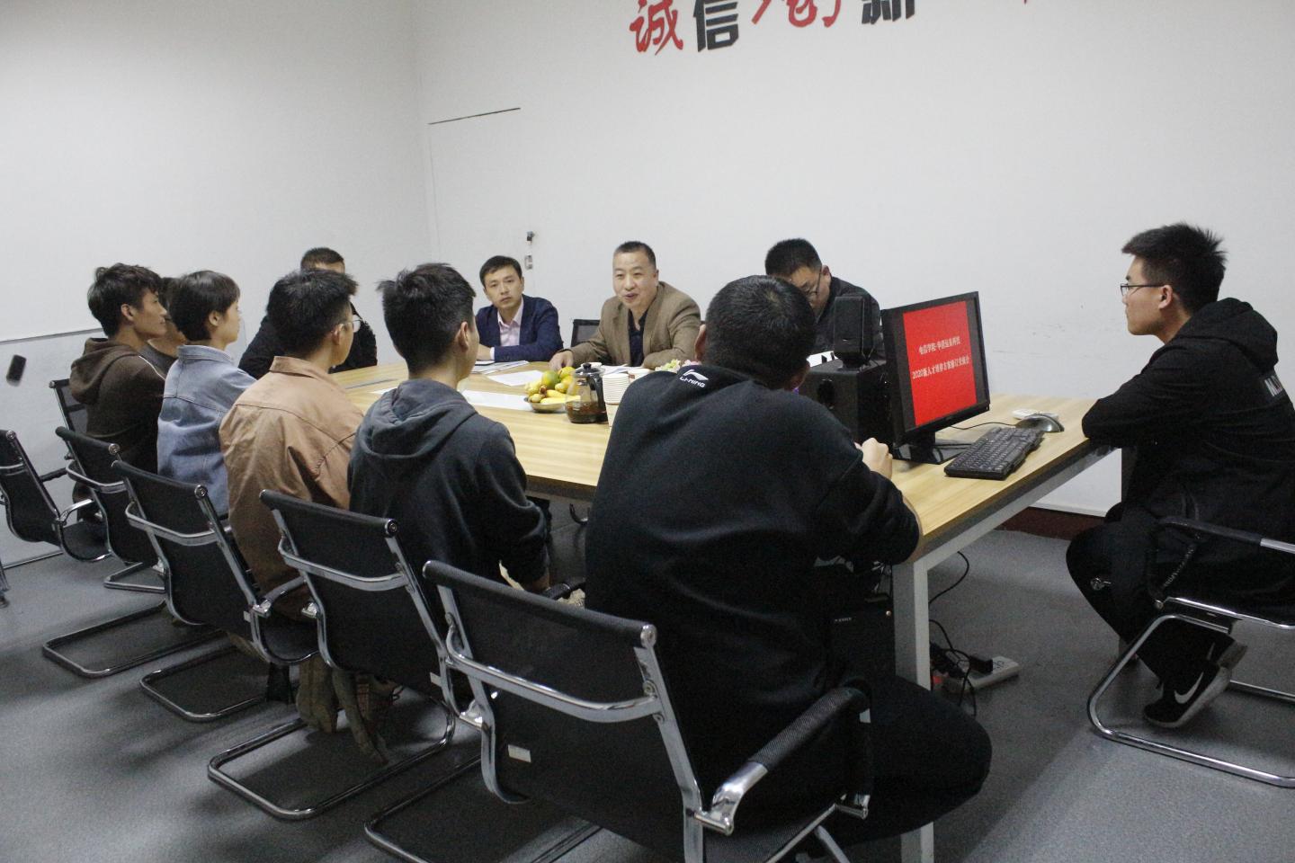 交流会后,刘爱军与在华清远见实训的公司员工进行了座谈,询问了员工的实训情况、生活情况和就业意向,并听取了员工对人才培养方案修订中的意见,对部分课程的开设顺序进行了优化。