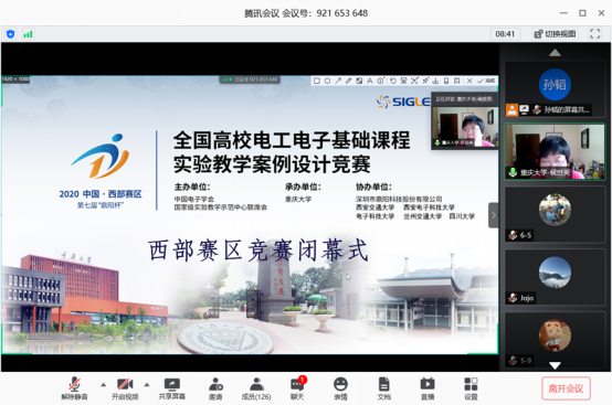 5月10日,由中国电子学会与国家级实验教学示范中心联席会联合主办、重庆大学承办的第七届全国高校电工电子基础实验教学案例设计竞赛(鼎阳杯)西部赛区展开比赛,较以往竞赛不同,受疫情影响,此次比赛以网络的形式展开。西部赛区共收到来自四川、云南、贵州、西藏、重庆、陕西、甘肃、青海、宁夏、新疆等地区170多件参赛作品。公司教师组建两队参加,经个人陈述、专家质询,网上打分产生一等奖、二等奖和三等奖,经过激烈的角逐,陈垚、吴晓云、李华三位老师设计的实验案例“拔河游戏机的研究、设计与实现”获得西部赛区一等奖,张商州老师的实验案例“模拟运算电路的设计”获得西部赛区三等奖。一等奖获得者将参加全国决赛。