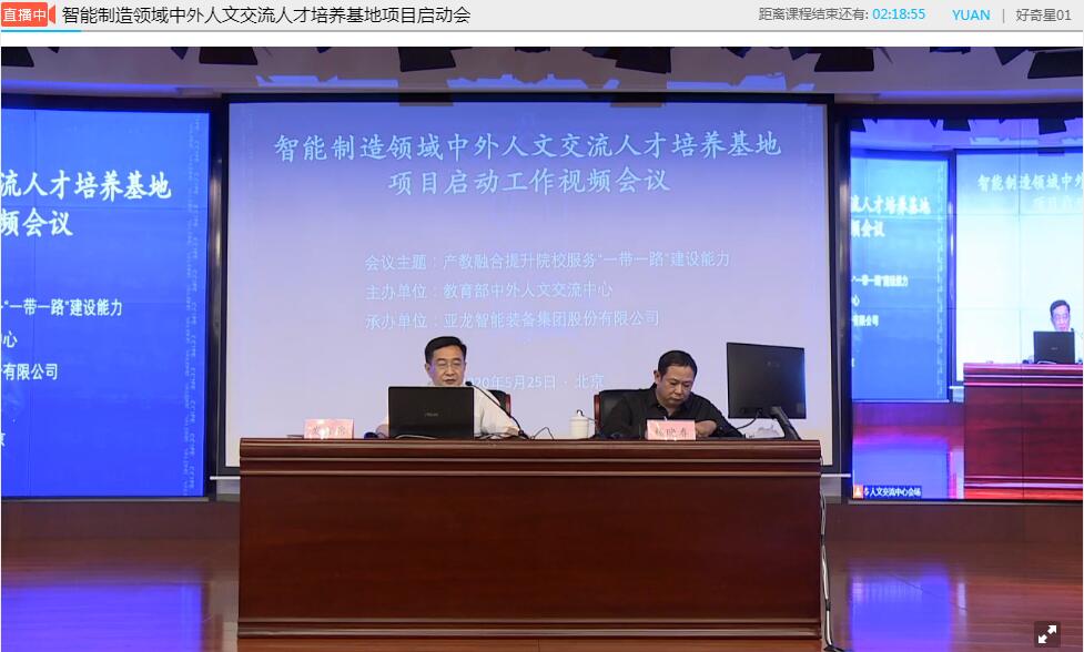 近日,教育部“智能制造领域中外人文交流人才培养基地项目”启动工作视频会议暨“产教融合提升院校服务‘一带一路’建设能力”主题会议在北京举行。本次项目启动工作会以线上视频形式进行,公司作为智能制造领域中外人文交流人才培养项目2020年第二批筹建院校在线参加了会议。会上,教育部中外人文交流中心主任杜柯伟为项目入选院校在线“云授牌”并颁发筹建证书。