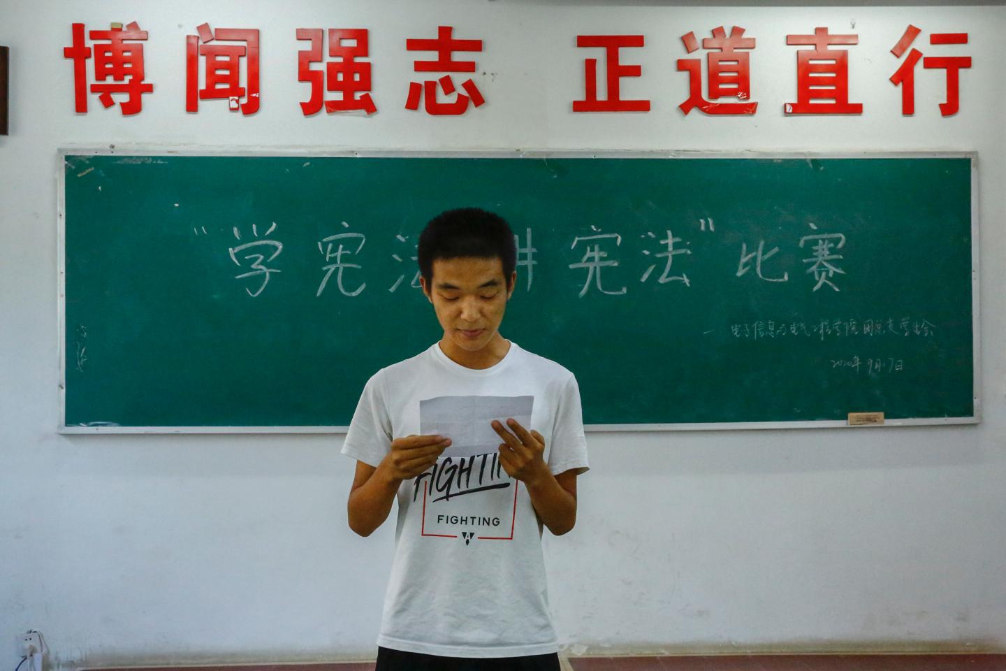 赛场上,参赛者们着装整齐,精神抖擞,以饱满的热情和激昂的声调向我们阐述了学习宪法的重要性以及立法于心的意义。评委们从仪表形象,演讲内容和演讲技巧三个方面为参赛成员打分并评出优胜者。