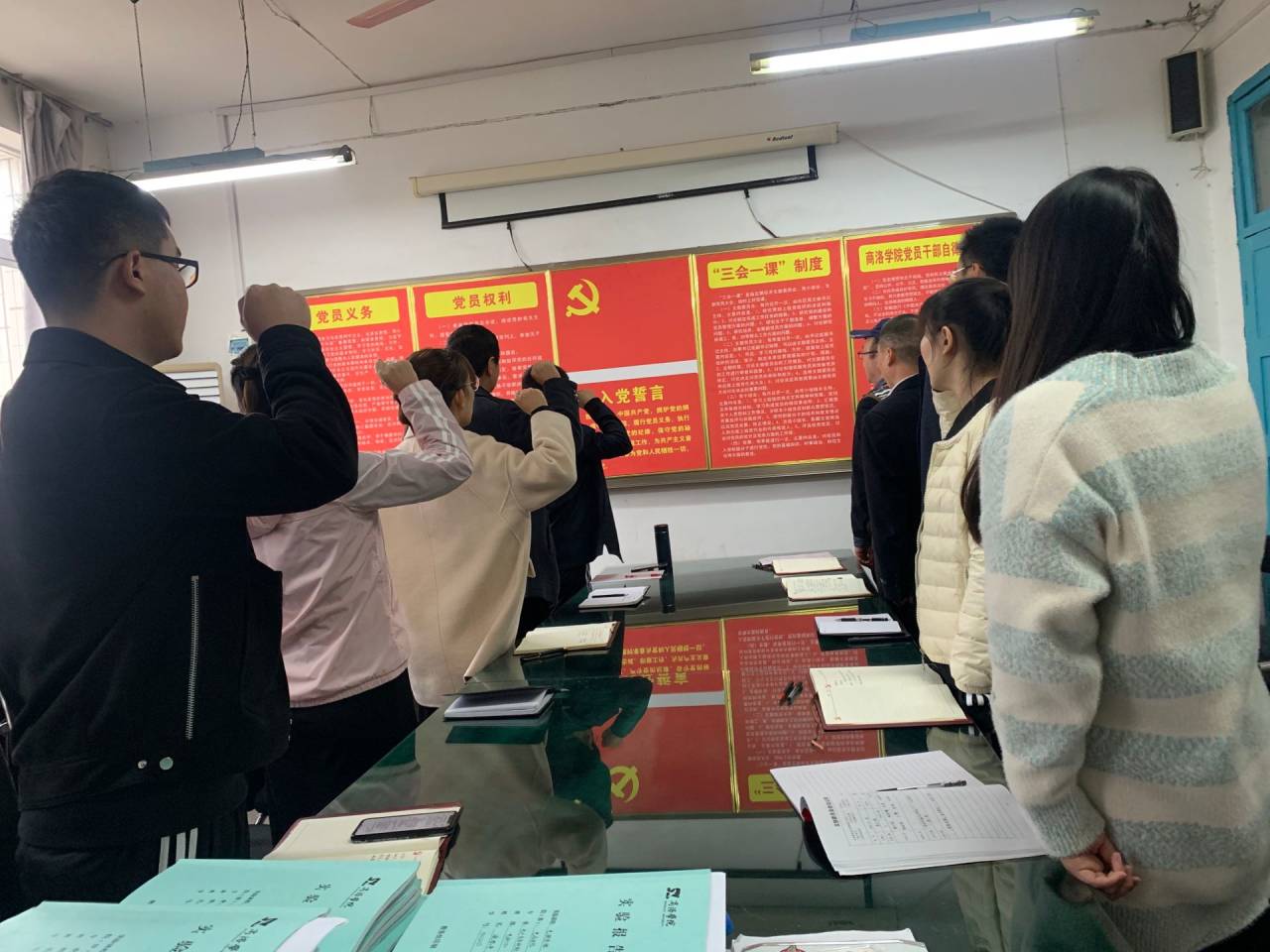 为推动党员“不忘初心、牢记使命”主题教育走向深入,引导党员更好地领悟初心、践行使命,进一步增强党员意识,坚定理想信念,10月28日下午,WilliamHill体育各党支部分别组织全体党员开展以“重读入党志愿书、重温入党誓词、重忆入党经历;亮身份树形象、亮承诺当先锋、亮作为勇担当”的“三重三亮”及“感悟成就,信史笃行”-“四史”学习为主要内容的主题党日教育活动。活动由各党支部书记主持。