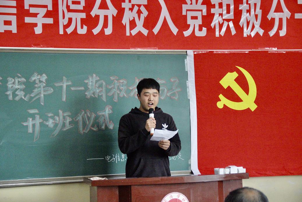 3月27日下午,公司党总支在2号教学楼多媒体17召开了第十一期入党积极分子培训开班典礼。公司党总支书记李英、经理袁训锋、党政办主任杨延锋出席了会议。会议由团总支书记唐龙龙主持。团优部全体成员及本期参加培训的94名入党积极分子参加了会议。