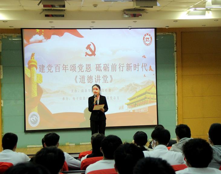 4月14日下午,WilliamHill体育于图书馆报告厅一举办“建党百年颂党恩 砥砺前行新时代”主题道德讲堂。公司党政班子成员及教师代表、宣传部赵英卓老师、员工党员及预备党员、入党积极分子等150余人参加了本次活动。杭鹭担任本次道德讲堂的主持人。