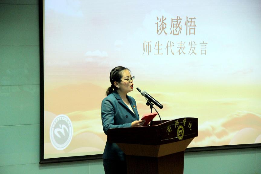 本次活动由“讲故事”、“诵经典”、“唱歌曲”、“谈感悟”及“送吉祥”五个环节组成。活动在师生们嘹亮的国歌声中拉开序幕。首先,在“讲故事”环节由朱俊宇同学为大家分享“革命烈士陈觉就义前给妻子赵云霄的遗书”。红色家书中饱含革命志士宁为玉碎不为瓦全的英雄气概和对妻子的一往情深以及对父母无限的感激和思念。接着,在“诵经典”环节中由马怡聪、王雯静、程鑫瑞、张鸿超朗诵《少年中国说》,这是梁启超先生对中华少年的殷切期盼,激励着当今电信学子努力拼搏为祖国建设出力的决心。《没有共产党就没有新中国》的合唱声提醒着我们在党的带领下中国的政治、经济、社会、文化建设等方方面面都取得了巨大的成就。随后,在“谈感悟”环节由退伍员工孙雪薇、叶辅军以及刘皎老师和陈垚老师分别发表自己关于建党百年,面向新时代的感悟。其中孙雪薇与叶辅军共同谈到“退伍不褪色”,以新时代老员工的身份为党和国家做出自己的贡献。刘皎老师回顾了中国共产党的艰苦历程,并强调要时刻铭记历史,党员干部在学党史过程中兼顾自身,学思结合,把握人生方向。陈垚老师则将主题聚焦于新时代老员工身上,要求电信学子要有坚定的政治方向,坚决拥护中国共产党,在以后的学习生活中志存高远、勇攀高峰!“送吉祥”环节中,通过互赠书签的方式将本次活动推向高潮。