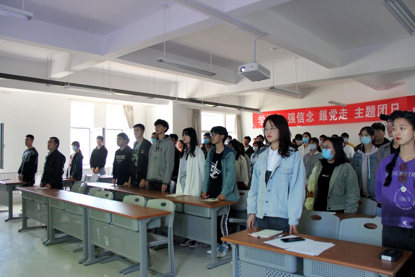 会议在嘹亮的团歌声中拉开帷幕,首先,由李旭阳致开幕词。接着,王雨彤带领大家重温入团誓言。随后,唐龙龙以提问的方式对共青团员的发展历程、基本任务及基本概要进行讲解。他要求同学们严格遵守新时代老员工团员的基本要求并认真履行团总支各支部的责任等,督促同学们认真学习,积极组织学习活动。最后,由李旭阳总结本次会议。