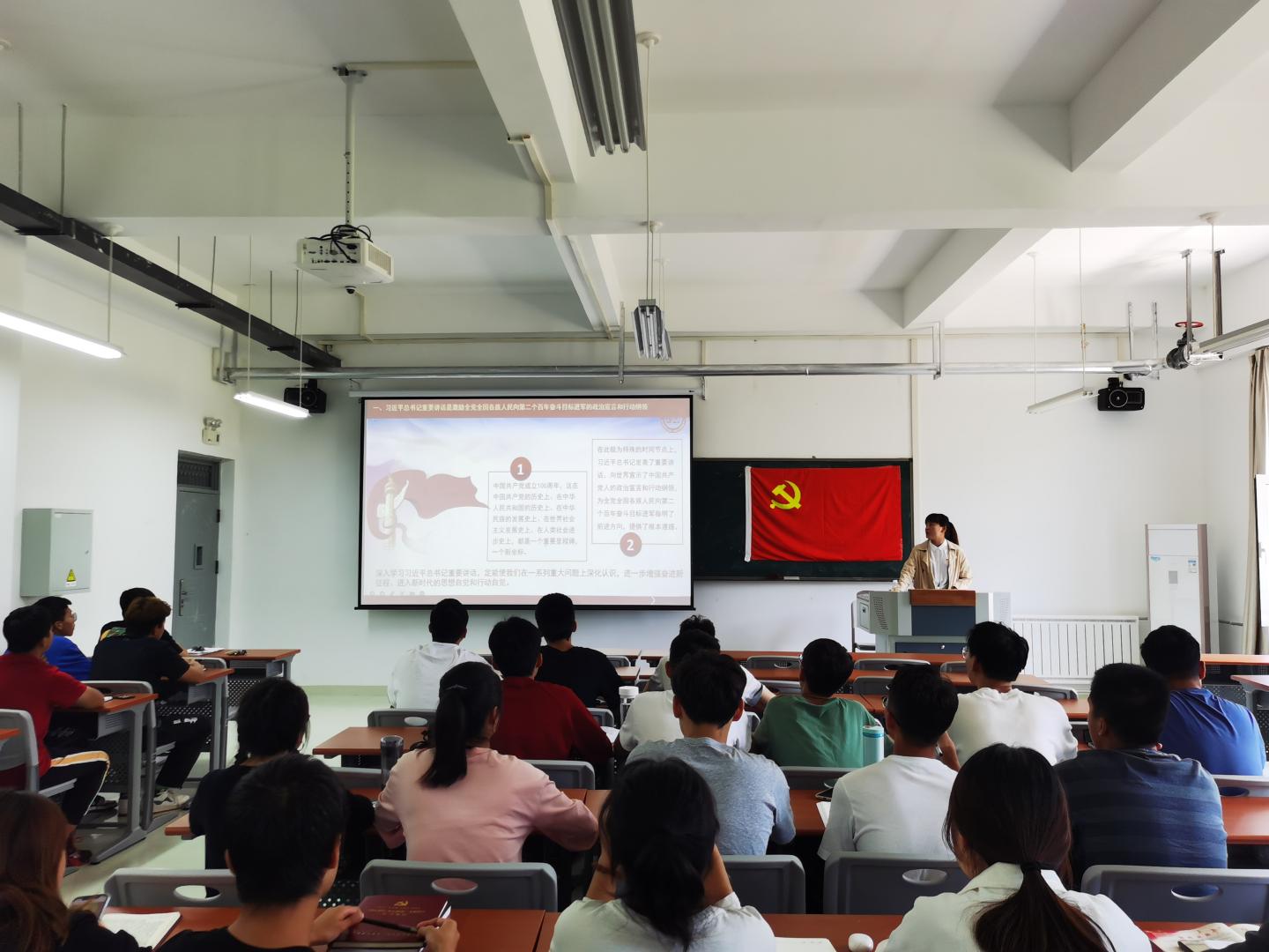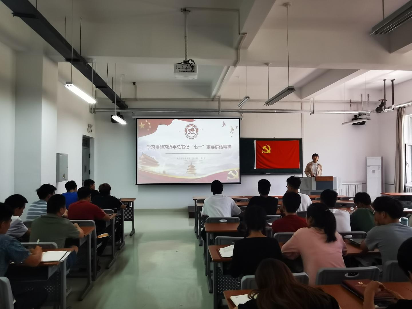 为了学习贯彻习近平总书记在建党100周年大会上发表的重要讲话精神,WilliamHill体育员工第二党支部于 9月14日在丹江校区3# 105开展“奋斗百年梦 启程新征程”主题党课活动。党课由员工第二党支部书记商哲主讲,支部全体员工党员参加了本次会议。