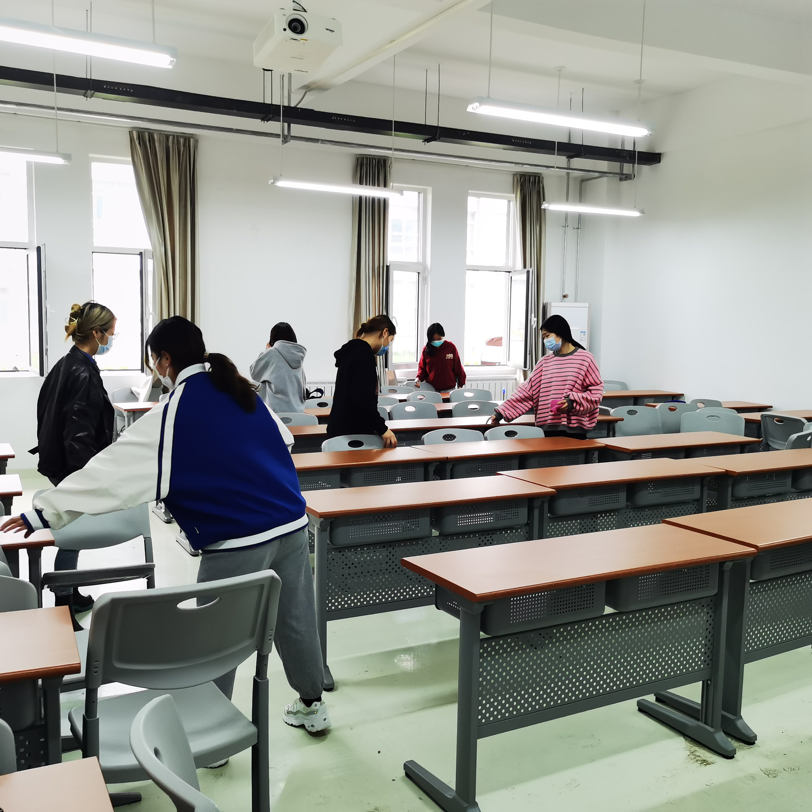 本次活动持续了两个多小时,经公司下午检查,各组均圆满完成了公司交给的任务。环境清新,书香满院,桌椅发亮,让同学们顿感神清气爽,学习的精神倍增。全体积极分子共同努力,让清香留在每一间教室,让青春的汗水充满整个校园。