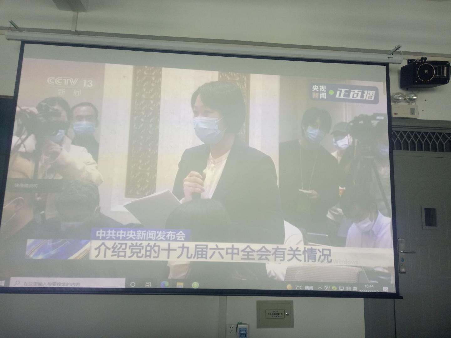 按照公司党委宣传部和党总支安排,11月12日上午10时,WilliamHill体育组织全体无课师生党员分别在丹江校区3-306、3-204多媒体教室收看十九届六中全会新闻发布会直播。共有师生党员96人参加了新闻发布会全程直播收看。