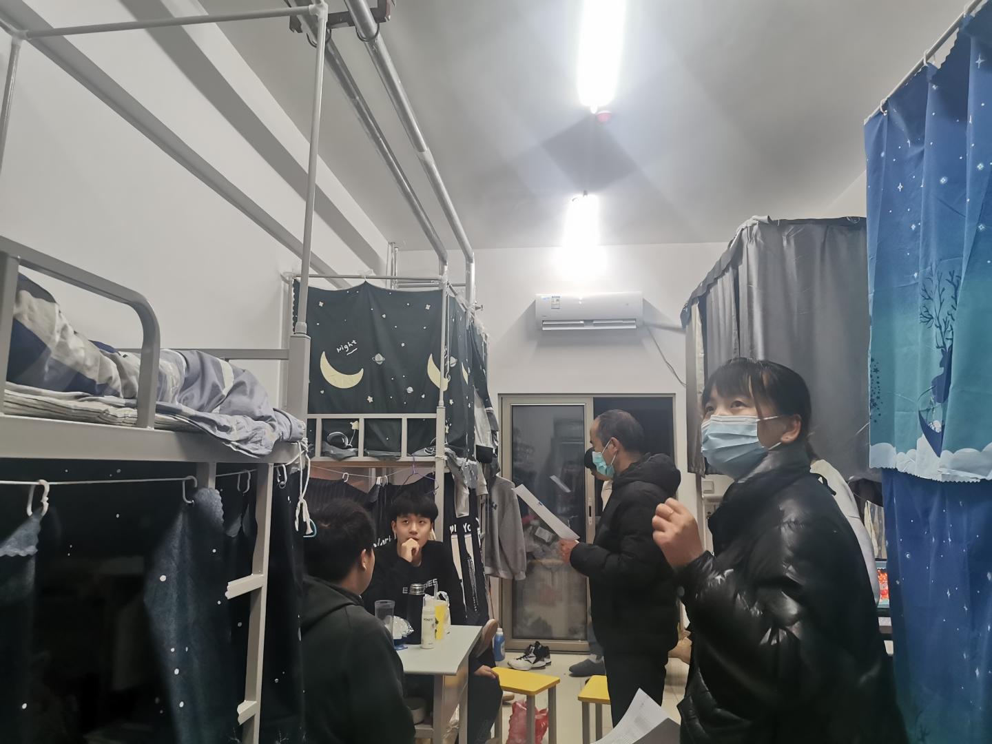 12月21日19:00,公司党总支书记李英带领学工办主任陈倩、辅导员唐龙龙、孙凯、商哲、吴茜、淡清雅等深入员工公寓,全面掌握员工入住公寓情况,深入员工,了解员工,关心员工。