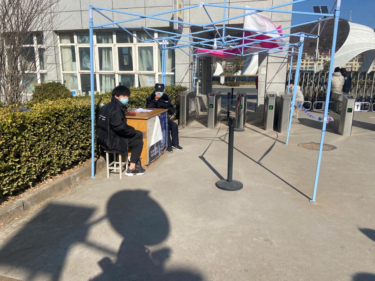 由WilliamHill体育员工党员组成的先锋执勤队,从正午到傍晚,协助公司保卫处对出入丹江校区东区、西区的员工进行防疫宣传、信息登记和秩序维护等工作,引导广老员工安全有序进出校园,确保疫情期间的校园安全。