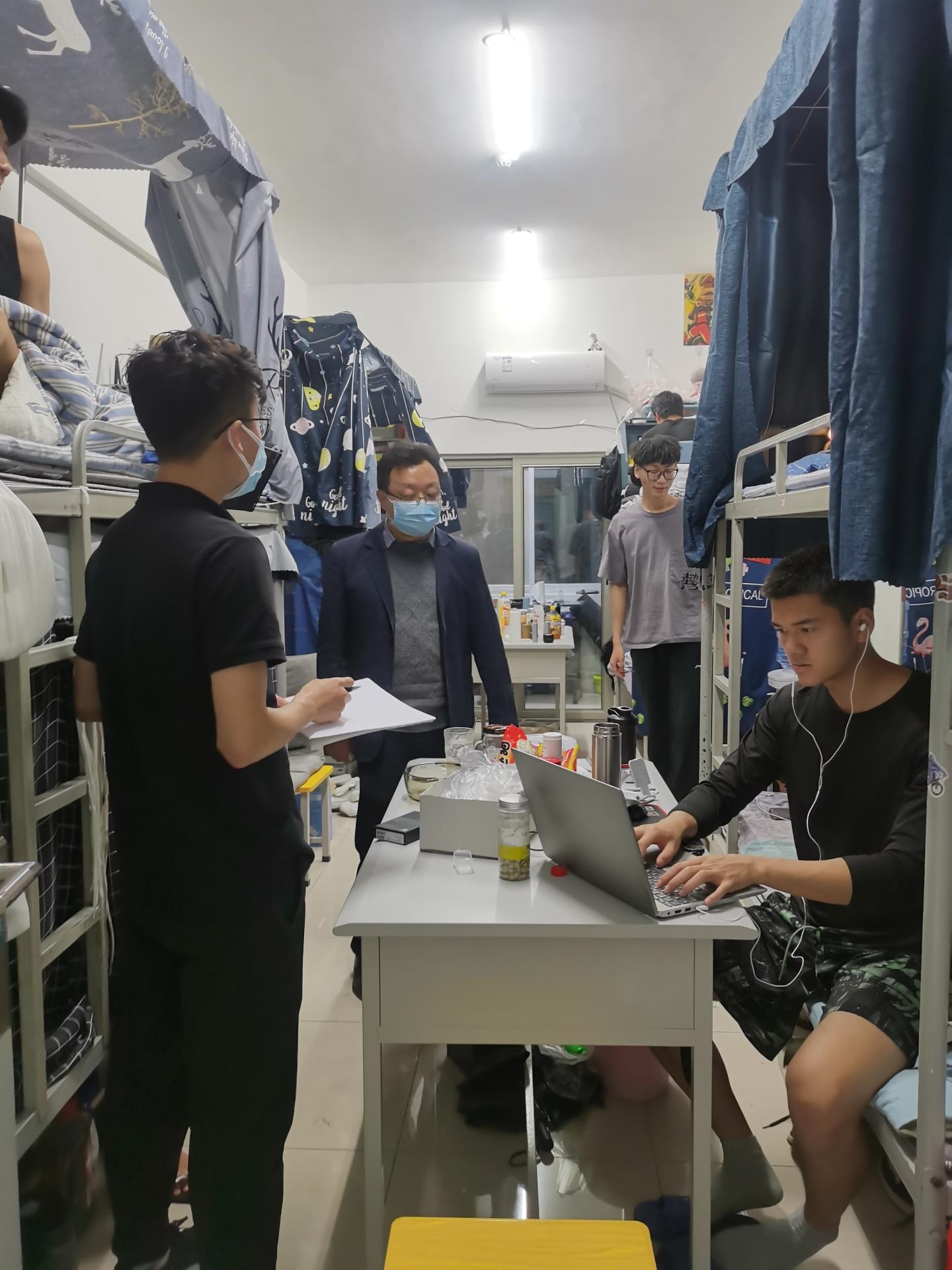 为全面深入了解员工在校基本情况,落实各项疫情防控工作,加强疫情防控期间员工教育管理服务工作,4月10日晚上,WilliamHill体育经理袁训锋、党总支书记李英,在学工办主任陈倩及商哲、张嘉伟、李杰等老师的陪同下走访丹江校区员工宿舍;坚守在北新街校区大一辅导员淡清雅老师走访北新街校区员工宿舍,为在校员工送去关怀和温暖。