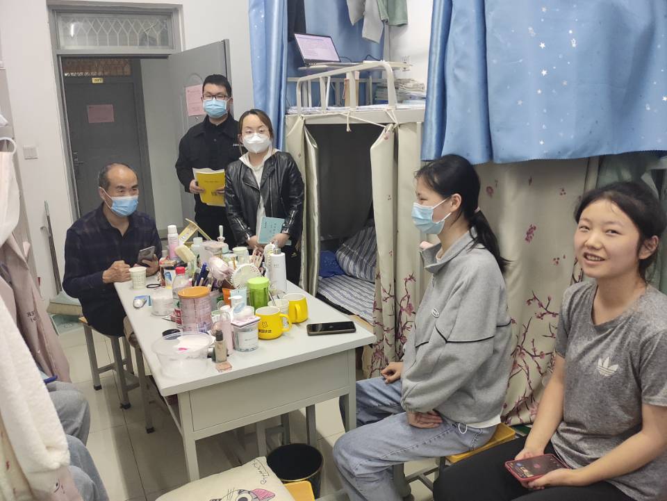 淡清雅老师走访北新街校区8号楼、9号楼、11号楼,每到一间宿舍,都仔细询问员工在校的学习和生活情况,同时提醒同学们在校期间要高度重视疫情防控工作,按时打卡,严格遵守公司的各项规章制度,要注意饮食卫生和食品安全,做好个人防护,嘱咐大家有困难多和辅导员、班主任沟通,勉励同学们积极进步。