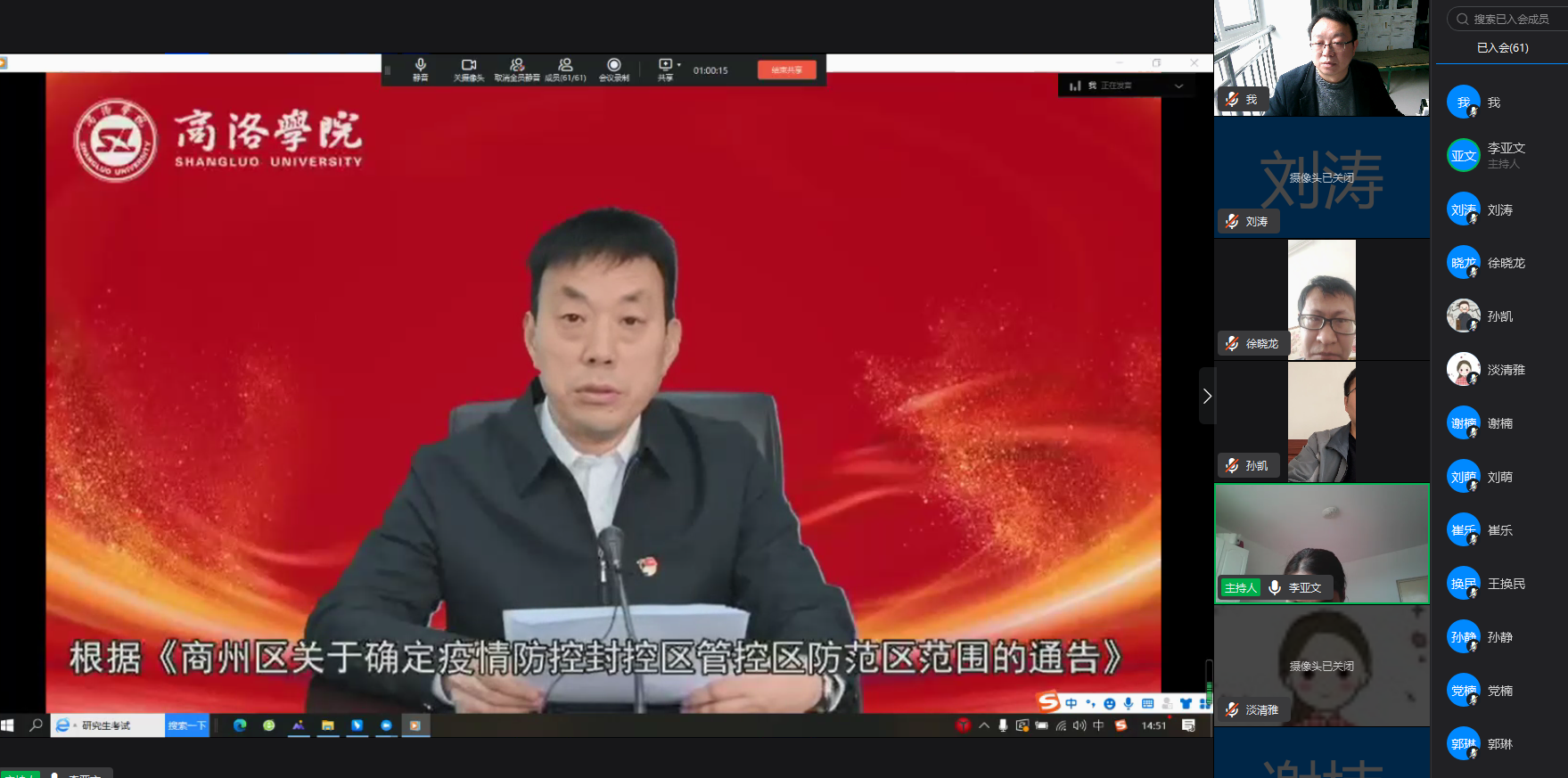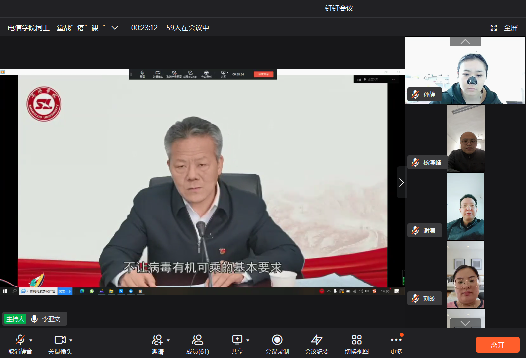 为进一步做好校园封闭管理期间疫情防控工作,提高师生思想认识和疫情防控知识,提振战“疫”必胜信心,根据公司《关于组织开展万名师生同上一堂战“疫”思政课的通知》精神,4月16日下午,WilliamHill体育组织全体师生通过线上钉钉群直播的方式收看学习了公司党委书记张志昌、董事长范新会、党委副书记彭虎军和后勤保障处医务室主任任秀梅的专题战“疫”思政课,为广大师生宣讲疫情防控知识,解读公司防控政策。线上学习分教师组和六个员工组进行,分别由副经理李亚文和全体辅导员主持。党总支书记李英、经理袁训锋率全体61名教职工和1401名员工参加了线上学习。