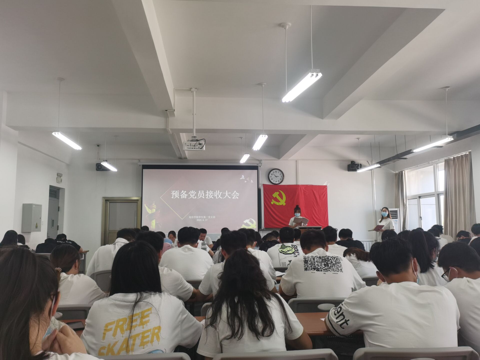 会议开始,全体肃立,奏唱国歌。主持人孙凯介绍参会人员,24名发展对象逐一向党组织汇报自己志愿加入中国共产党的决心及在积极分子期间的表现。入党介绍人分别就发展对象在培养考察期内的培养情况及其表现做了汇报说明,并发表了对发展对象能否入党的个人意见。最后支部大会采取无记名投票的方式进行表决,一致同意接收余凯宁等24名同志为预备党员。