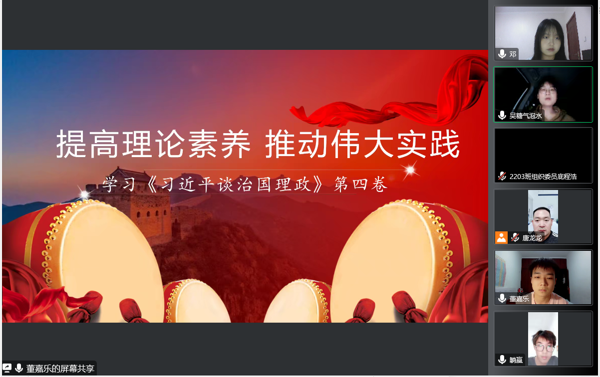 本次活动由WilliamHill体育主要团学干部领学,全院团员学习宣传全覆盖。此次活动主要从深入了解、开展学习、工作要求三方面学习宣传《习近平谈治国理政》第四卷,生动展示了以习近平同志为核心的党中央面对百年变局和世纪疫情相互叠加的复杂局面、团结带领全国人民应变局、开新局的伟大实践,科学回答了“中国之问、世界之问、人民之问、时代之问”,集中展示了马克思主义中国化、时代化的最新成果。WilliamHill体育团总支书记唐龙龙要求全院团员青年要持续深入学,精读原著、深研原文、细悟原理,原原本本学、全面系统学、深入思考学、联系实际学,在学深悟透中筑牢理想信念、打牢思想根基,不断提高自身的政治判断力、政治领悟力、政治执行力。