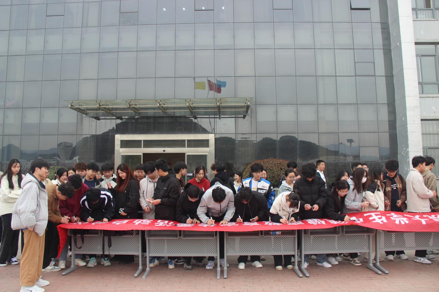 刘征文详细介绍了校院两级心理健康教育季活动安排,号召全体员工积极参与;公司十佳班级心理委员获得者曹怡欣分享工作方法和经验;赵永平在讲话中嘱咐全体员工要培育自尊自信、理性平和与阳光向上的心态,积极开展朋辈帮扶,自觉参与到校、院各类活动中,展现当代老员工的良好精神风貌。活动最后全体参会人员在启动横幅上签名。