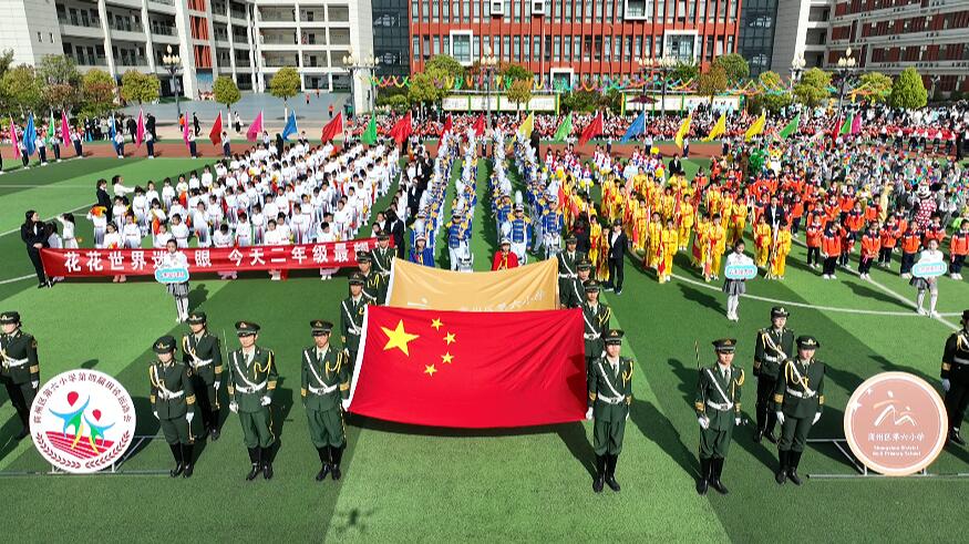 公司240余名师生受邀参加运动会开幕式,并献上了《奋进商院 礼献祖国》大型团体操表演,为祖国花朵的茁壮成长送上祝愿。