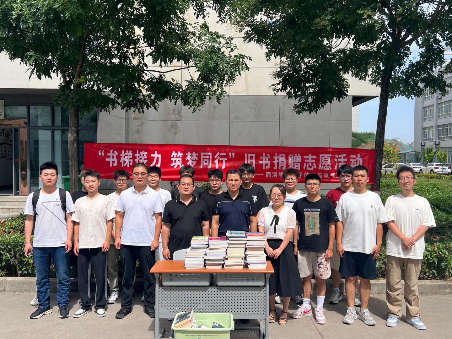 “书梯接力 筑梦同行”旧书捐赠志愿主题活动。6月24日,毕业生主动将自己的考研资料、课外读物、专业书籍等捐献给公司阅览室。毕业生怀着一颗感恩的心,将带有自己青春印记的有价值的书籍留给学弟学妹,将知识传承,让爱心传递。