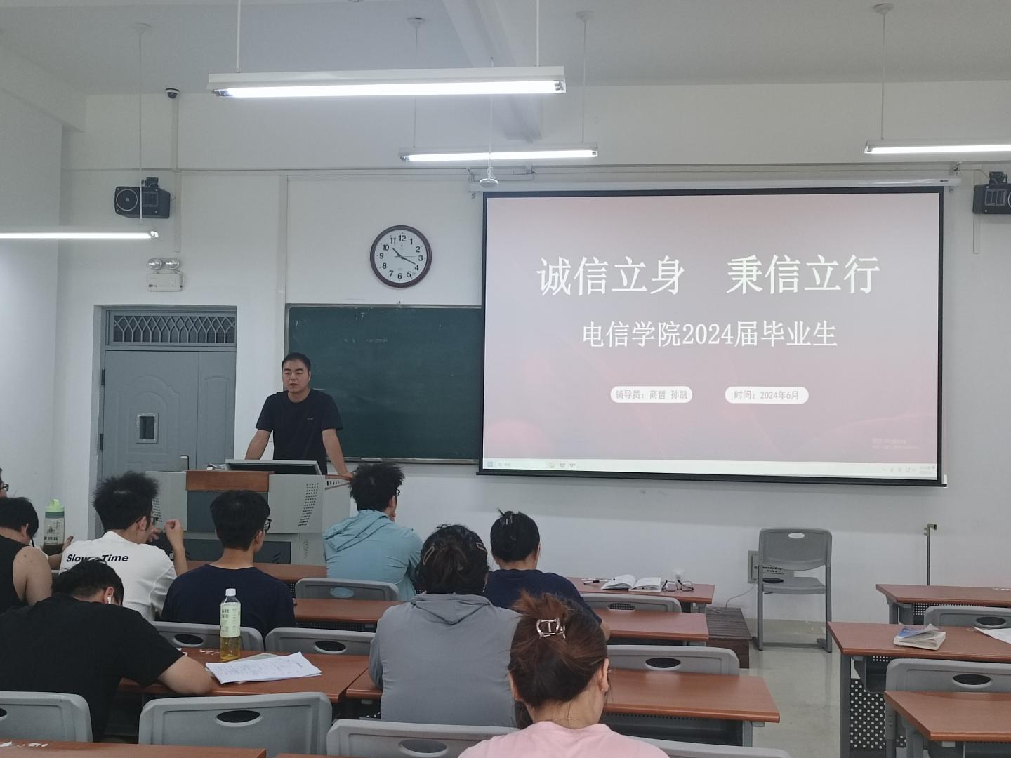 “诚信立身 秉信立行”毕业生诚信廉政教育主题活动。6月26日,毕业班辅导员在丹江校区3-106室召开“诚信立身 秉信立行”毕业生诚信教育主题班会,两位老师强调诚信不仅是中华民族的传统美德,更是现代社会的基本道德规范,是每个员工应该坚守的道德底线;在个人层面,诚信是个人品质的体现,是赢得他人尊重和信任的基础;在社会层面,诚信是维护社会秩序、促进社会和谐稳定的重要保障。两位老师还提醒毕业生们,及时还清助学贷款是应尽的义务,未按时归还国家助学贷款会对个人信用有影响。