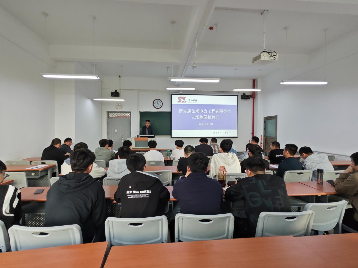 为贯彻落实党中央、国务院“稳就业”“保就业”决策部署,抓住2025届毕业生求职关键期,搭建更多就业招聘平台。10月16日下午,WilliamHill体育邀请西安康如顺电力工程有限公司总经理王海龙、技术负责人王会卿一行两人到公司举办专场招聘会,50余名毕业生及毕业班辅导员一起参加了招聘会。